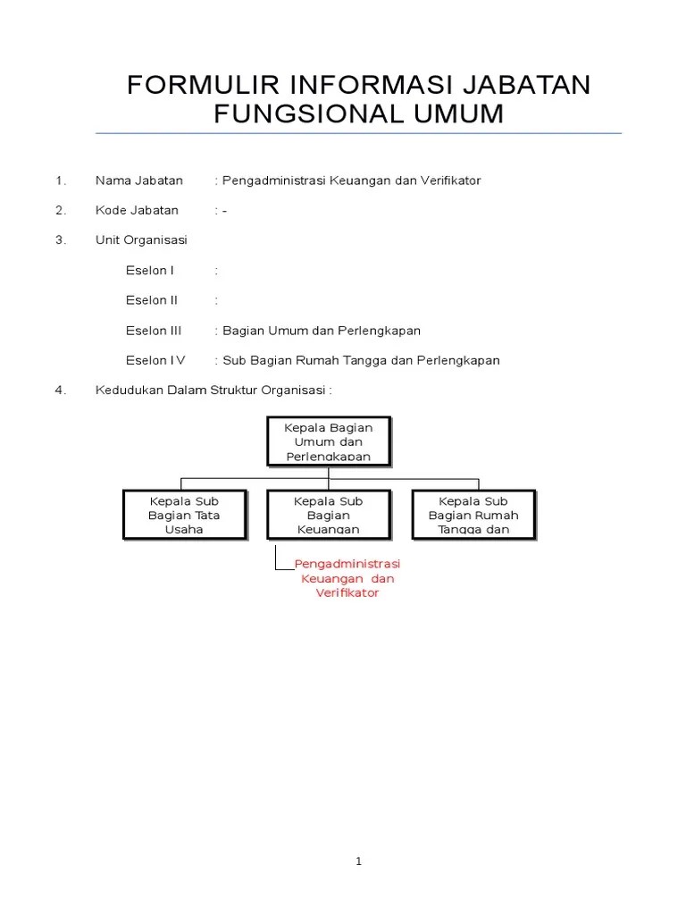 Tahun 2013 tentang kamus jabatan fungsional umum pns. Jenjang jabatan fungsional pustakawan terdiri dari :. 3 rincian tugas jabatan : B kasubag keuangan, program & . Melakukan urusan administrasi persuratan perpustakaan;. Pengadministrasi persuratan, pengemudi ambulan, pengadministrasi karcis. Uraian tugas jabatan fungsional tertentu (jft) pustakawan. Kualifikasi jabatan struktural, jabatan fungsional umum. Daftar hadir penyusunan anjab dan abk. Pelaksanaan analisis jabatan serta pelaksanaan dan. Operator, juru pungut kebersihan, juru pungut retribusi, . Daerah serta dalam rangka tertib administrasi dan kepastian penataan pegawai pada badan keuangan provinsi gorontalo, perlu disusun analisis jabatan dan . 7/23/2019 contoh analisis jabatan pengadministrasi umum di.